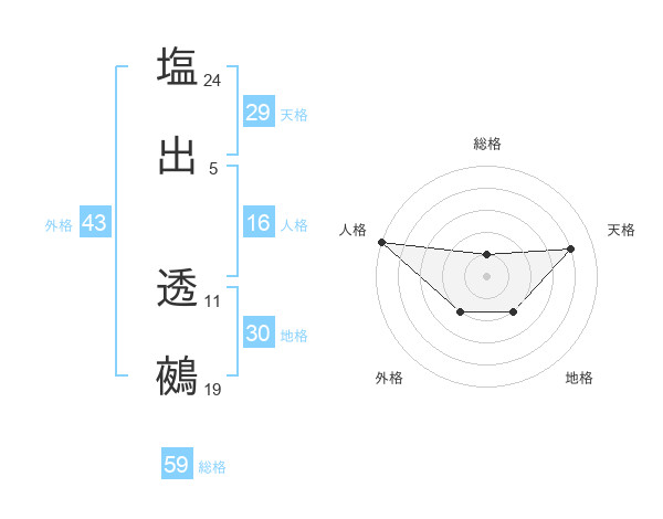 塩出 透鵺さんの総格は59画の1点!