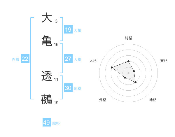 大亀 透鵺さんの総格は49画の2点!