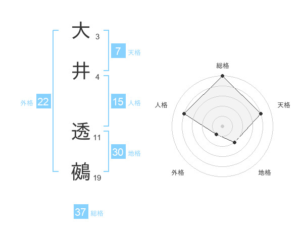 大井 透鵺さんを姓名の画数から五運を鑑定