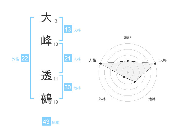 大峰 透鵺さんの総格は43画の2点!