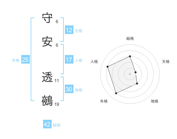 守安 透鵺さんの総格は42画の3点!
