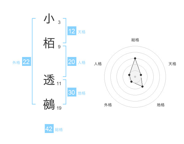 小栢 透鵺さんの総格は42画の3点!