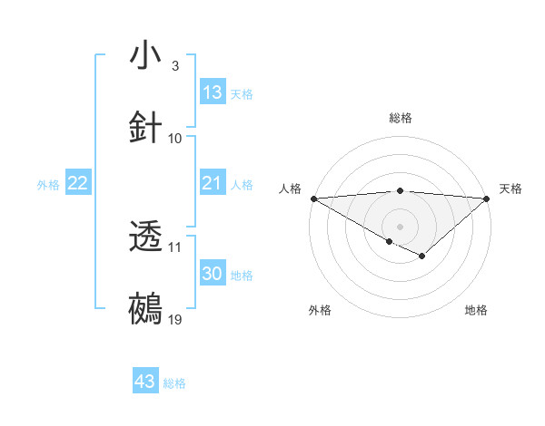小針 透鵺さんの天格は13画の5点!