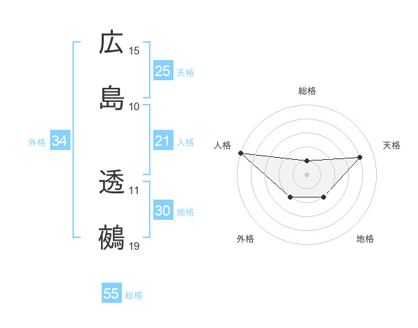 広島 透鵺さんの総格は55画の1点!