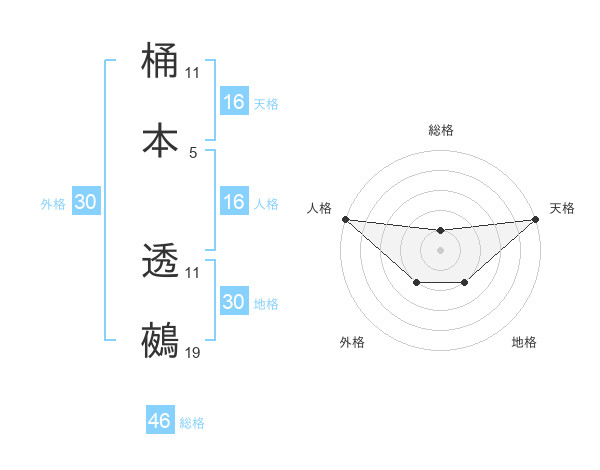 桶本 透鵺さんの地格は30画の2点!