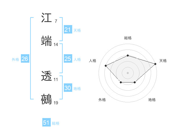 江端 透鵺さんの総格は51画の3点!