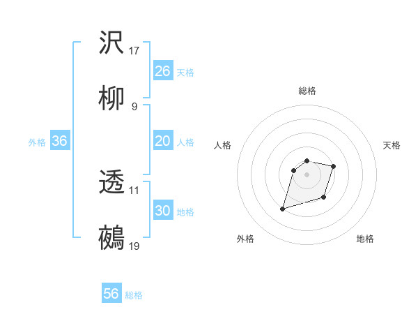 沢柳 透鵺さんの天格は26画の2点!