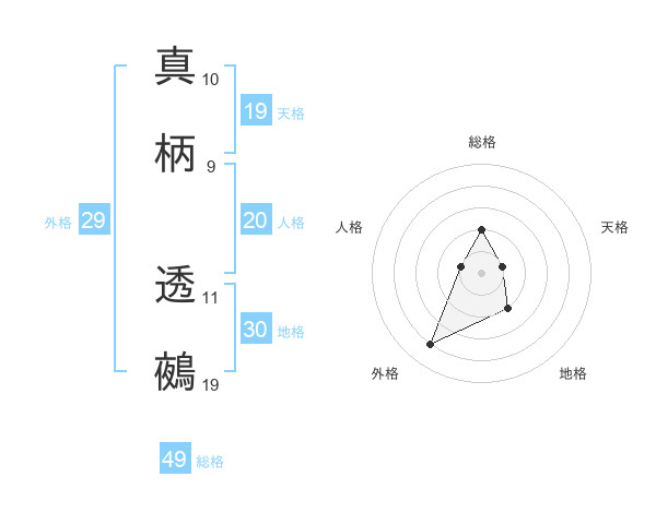 真柄 透鵺さんの総格は49画の2点!