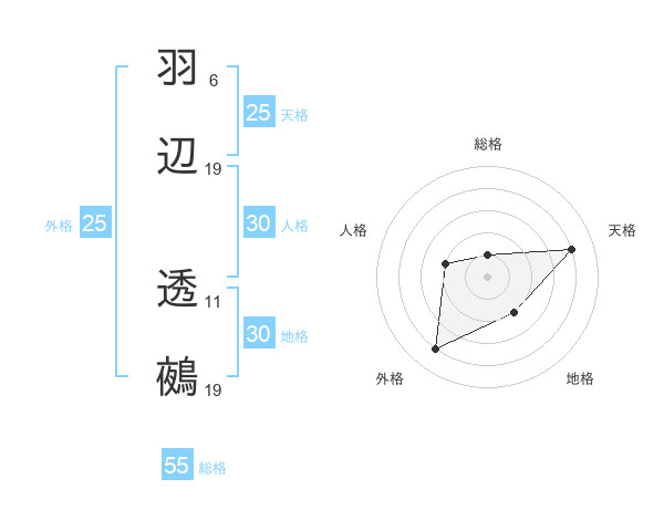 羽辺 透鵺さんを姓名の画数から五運を鑑定