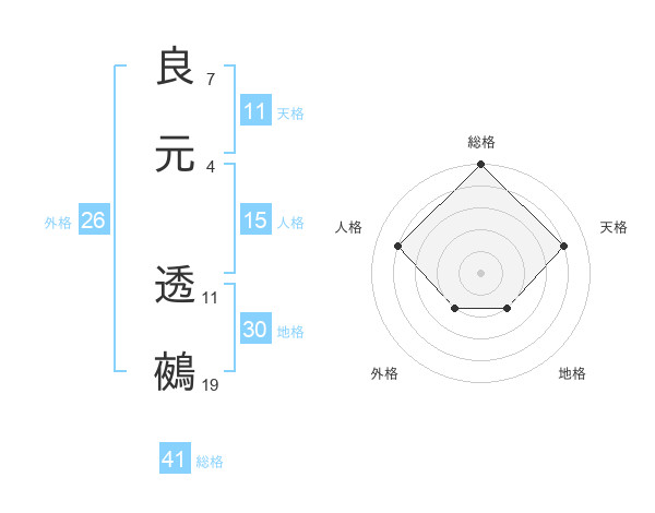 良元 透鵺さんの総格は41画の5点!