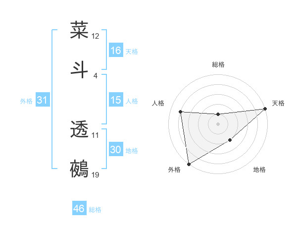 菜斗 透鵺さんの総格は46画の1点!
