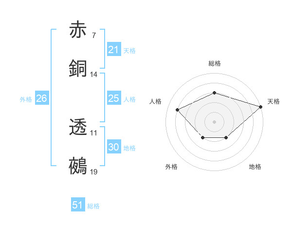 赤銅 透鵺さんの総格は51画の3点!