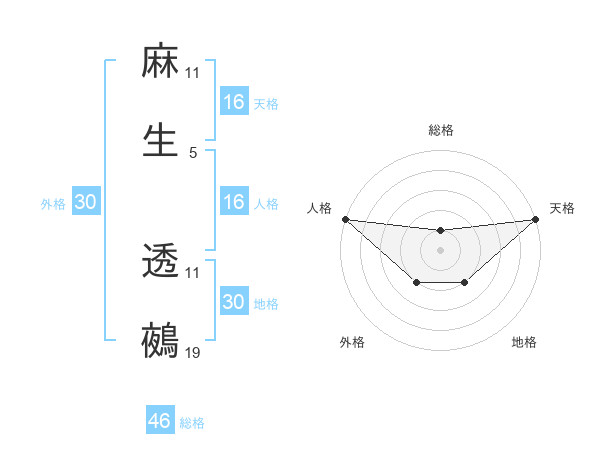 麻生 透鵺さんの天格は16画の5点!