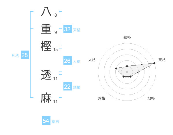 八重樫 透麻さんを姓名の画数から五運を鑑定