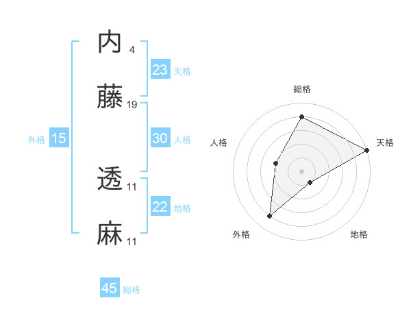 内藤 透麻さんを姓名の画数から五運を鑑定