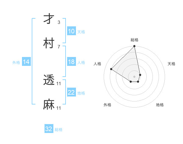 才村 透麻さんの総格は32画の5点!