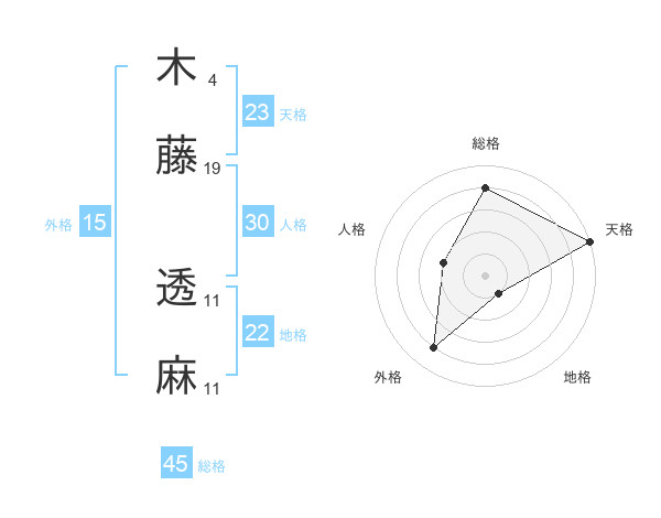 木藤 透麻さんの総格は45画の4点!