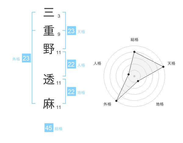 三重野 透麻さんを姓名の画数から五運を鑑定