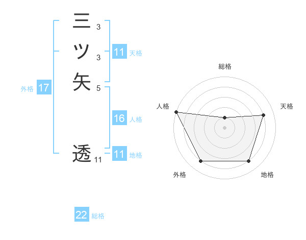 三ツ矢 透さんを姓名の画数から五運を鑑定