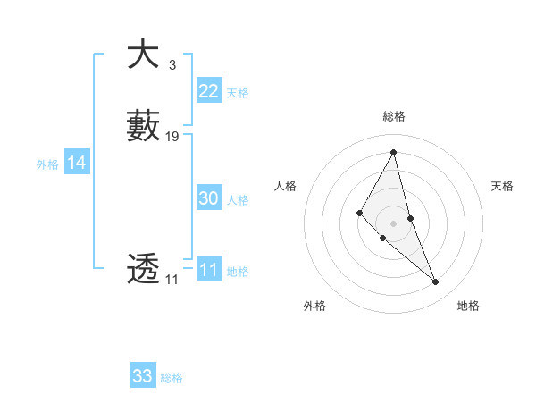 大藪 透さんの総格は33画の4点!