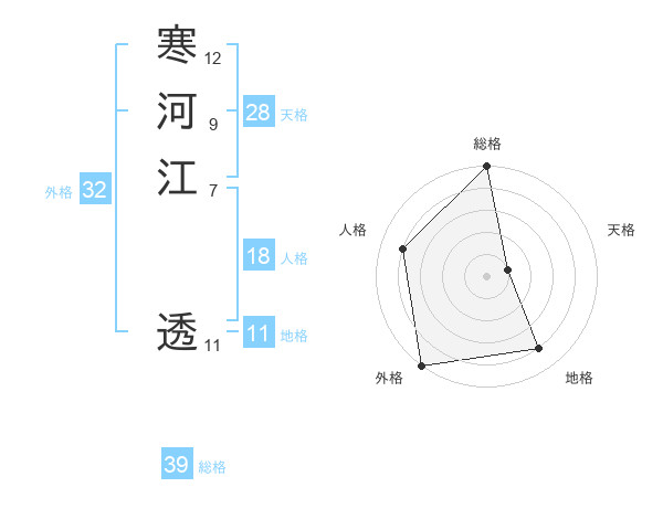 寒河江 透さんの総格は39画の5点!