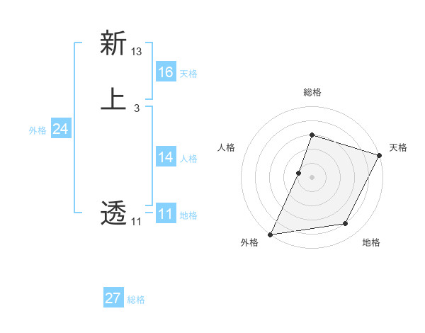 新上 透さんの天格は16画の5点!