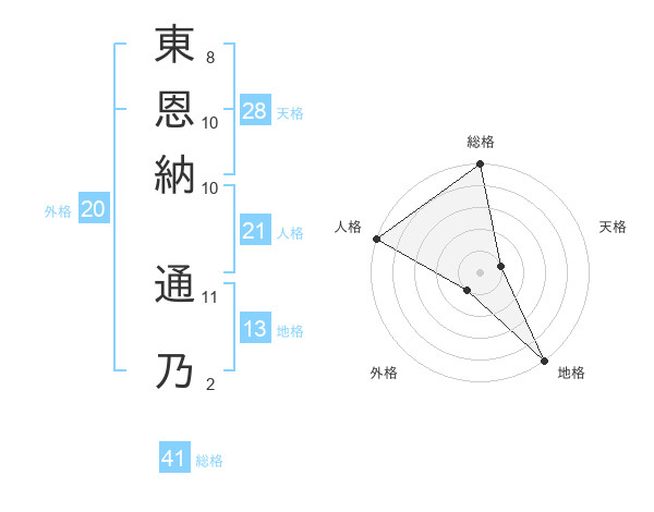 東恩納 通乃さんの天格は28画の1点!