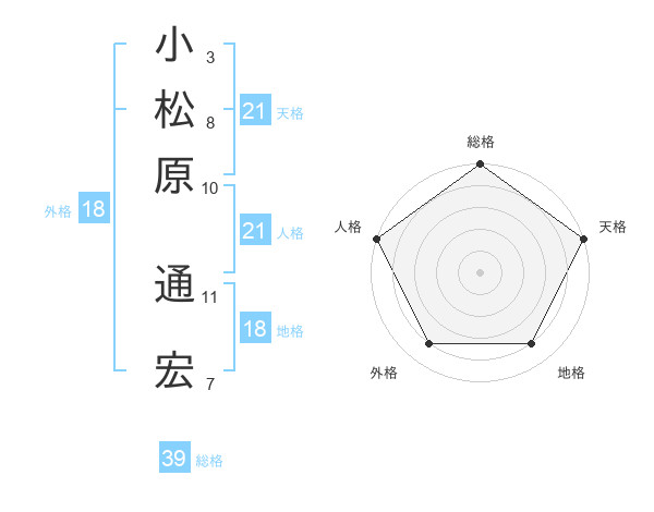 小松原 通宏さんの天格は21画の5点!