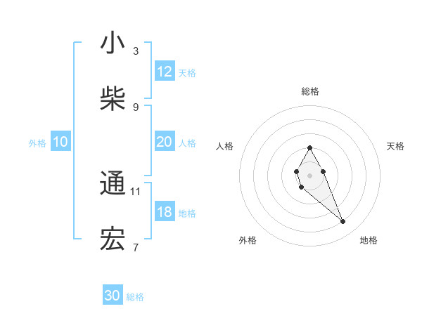 小柴 通宏さんの総格は30画の2点!