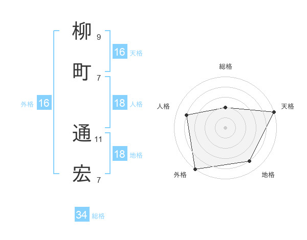 柳町 通宏さんを姓名の画数から五運を鑑定