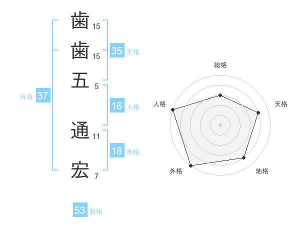 歯歯五 通宏さんを姓名の画数から五運を鑑定