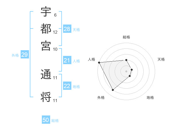 宇都宮 通将さんを姓名の画数から五運を鑑定
