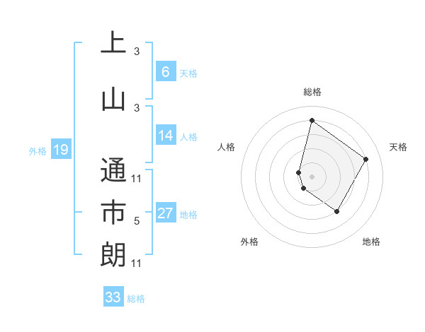 上山 通市朗さんを姓名の画数から五運を鑑定