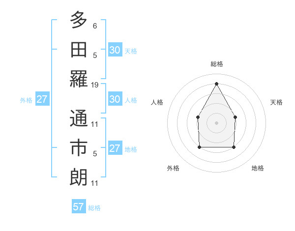 多田羅 通市朗さんの総格は57画の4点!
