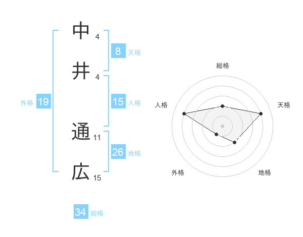 中井 通広さんの人格は15画の4点!