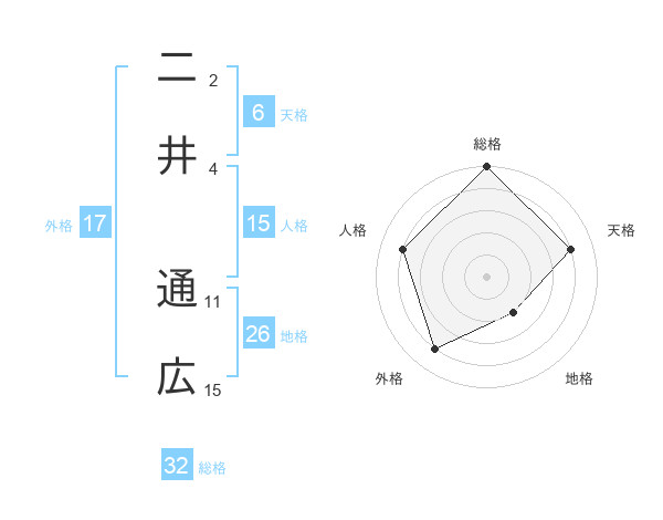二井 通広さんの総格は32画の5点!