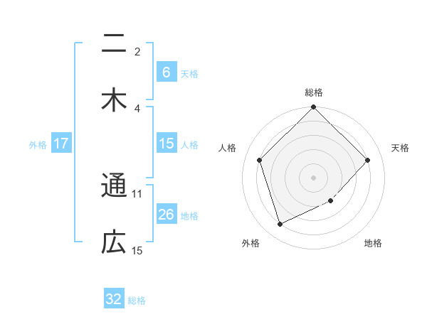 二木 通広さんの総格は32画の5点!