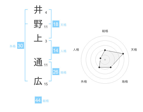 井野上 通広さんの総格は44画の2点