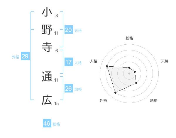 小野寺 通広さんを姓名の画数から五運を鑑定