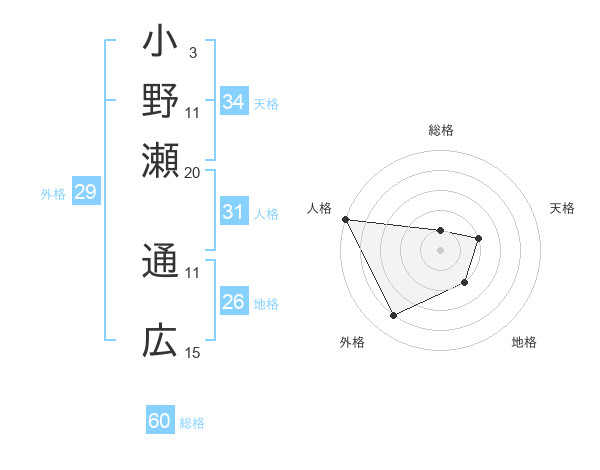 小野瀬 通広さんを姓名の画数から五運を鑑定