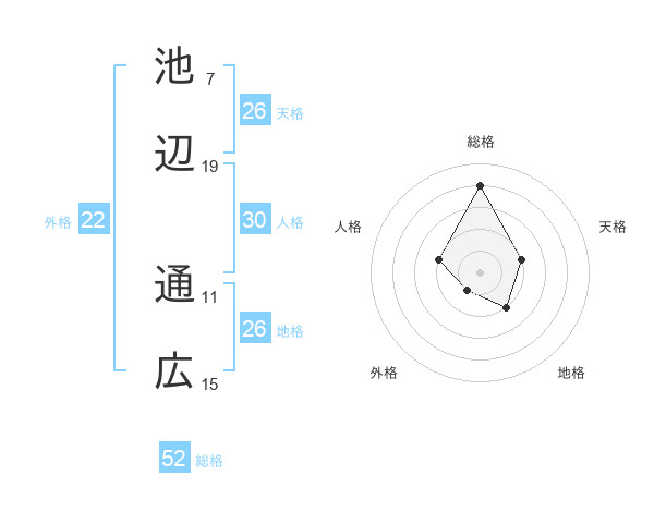 池辺 通広さんの総格は52画の4点!