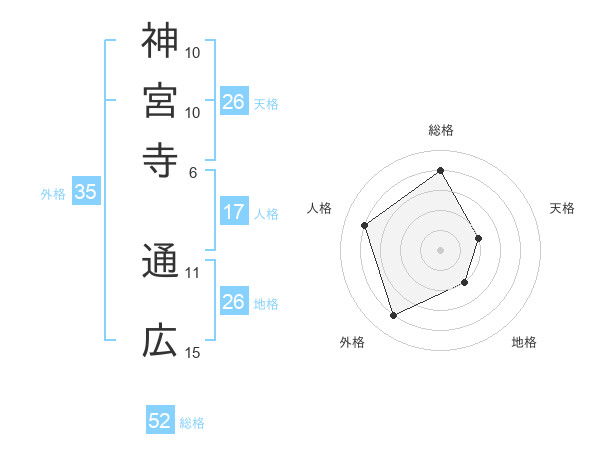 神宮寺 通広さんを姓名の画数から五運を鑑定