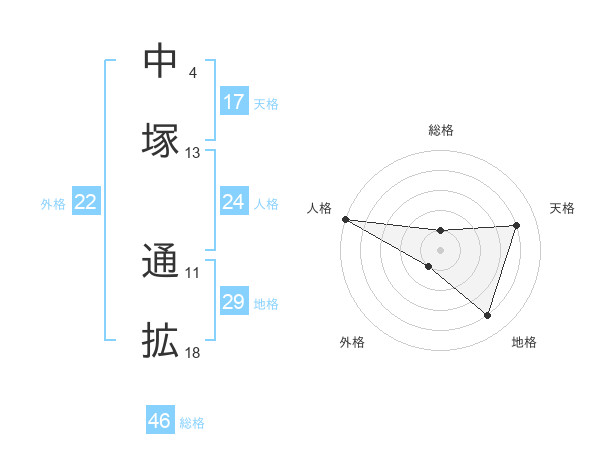 中塚 通拡さんを姓名の画数から五運を鑑定