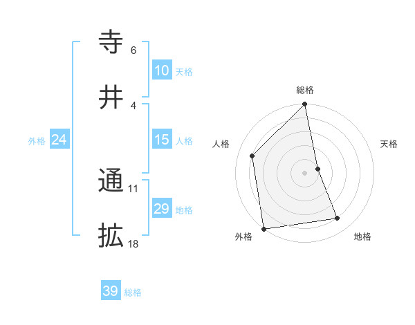 寺井 通拡さんの総格は39画の5点!