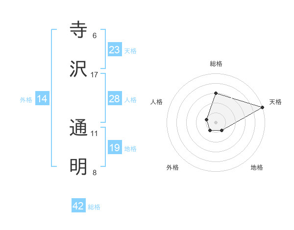 寺沢 通明さんを姓名の画数から五運を鑑定