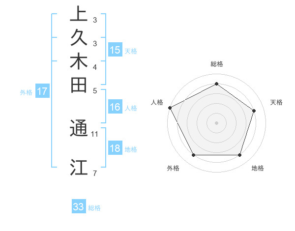 上久木田 通江さんの総格は33画の4点!