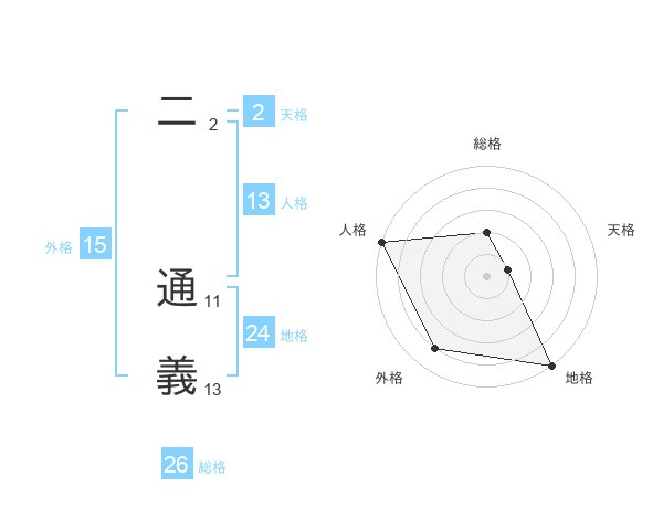二 通義さんの総格は26画の2点!