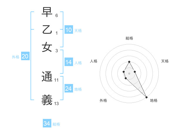 早乙女 通義さんを姓名の画数から五運を鑑定