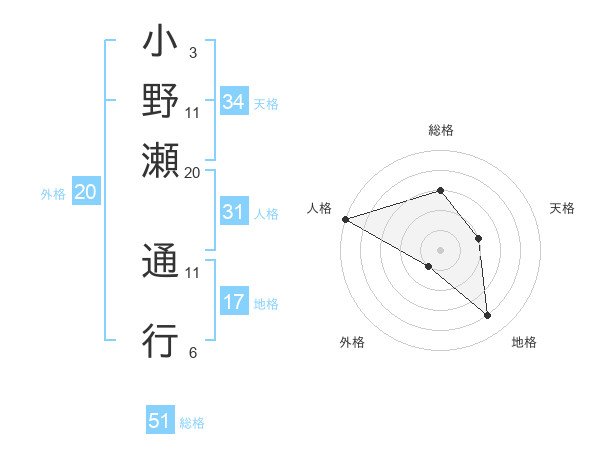 小野瀬 通行さんを姓名の画数から五運を鑑定