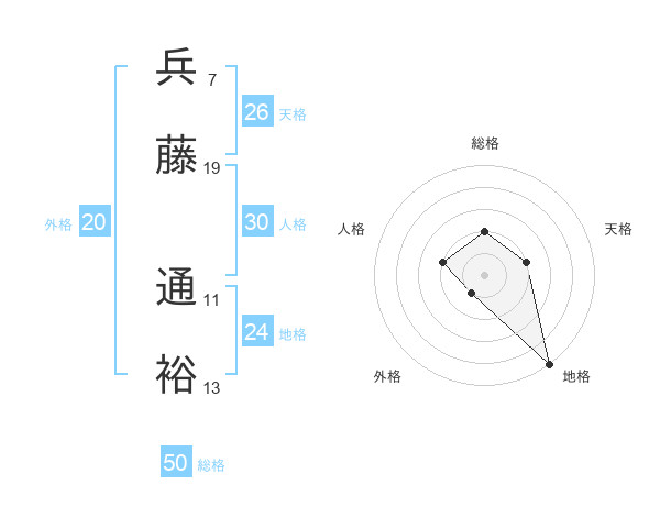 兵藤 通裕さんを姓名の画数から五運を鑑定
